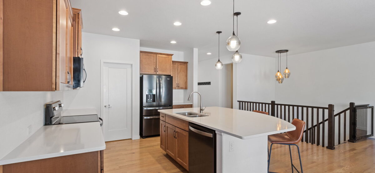 Incredible University Park stunner located in the heart of Colorado Springs. Situated on a quiet cul-de-sac that backs directly to the neighborhood park, this beautiful home was built in 2020 and immediately impresses with expansive natural wood floors and an ample amount of natural light. The main level features an open and flowing floor plan with a well-equipped kitchen including quartz countertops, stainless steel appliances, and a huge corner pantry. The owner’s suite is equally impressive, offering a 5-piece attached bathroom and a custom-finished walk-in closet. The lower level includes a large family room perfect for entertaining, as well as two additional bedrooms, a bathroom, and a generous storage room. Outside, you can enjoy Colorado summers under the covered deck in your private backyard or take a short walk up the trail to the park. This home truly offers the height of Colorado Springs living.