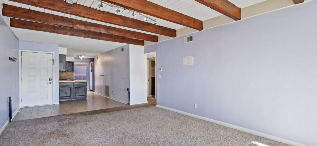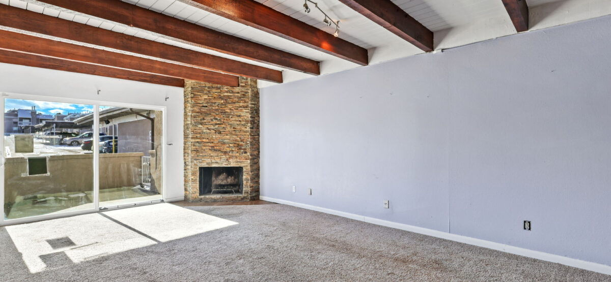 Incredible opportunity awaits with this ground level condo located in the heart of the city. With 3 generous sized bedrooms, 2 full bathrooms and an inviting and open floorplan you won’t want to miss this one. The main living room has beamed ceilings, a rocked fireplace and a walkout to your own private patio to enjoy the outdoors. The complex offers a pool and clubhouse and is walking distance to amenities, shopping and more. With just a little bit of vision and effort this unit can shine again